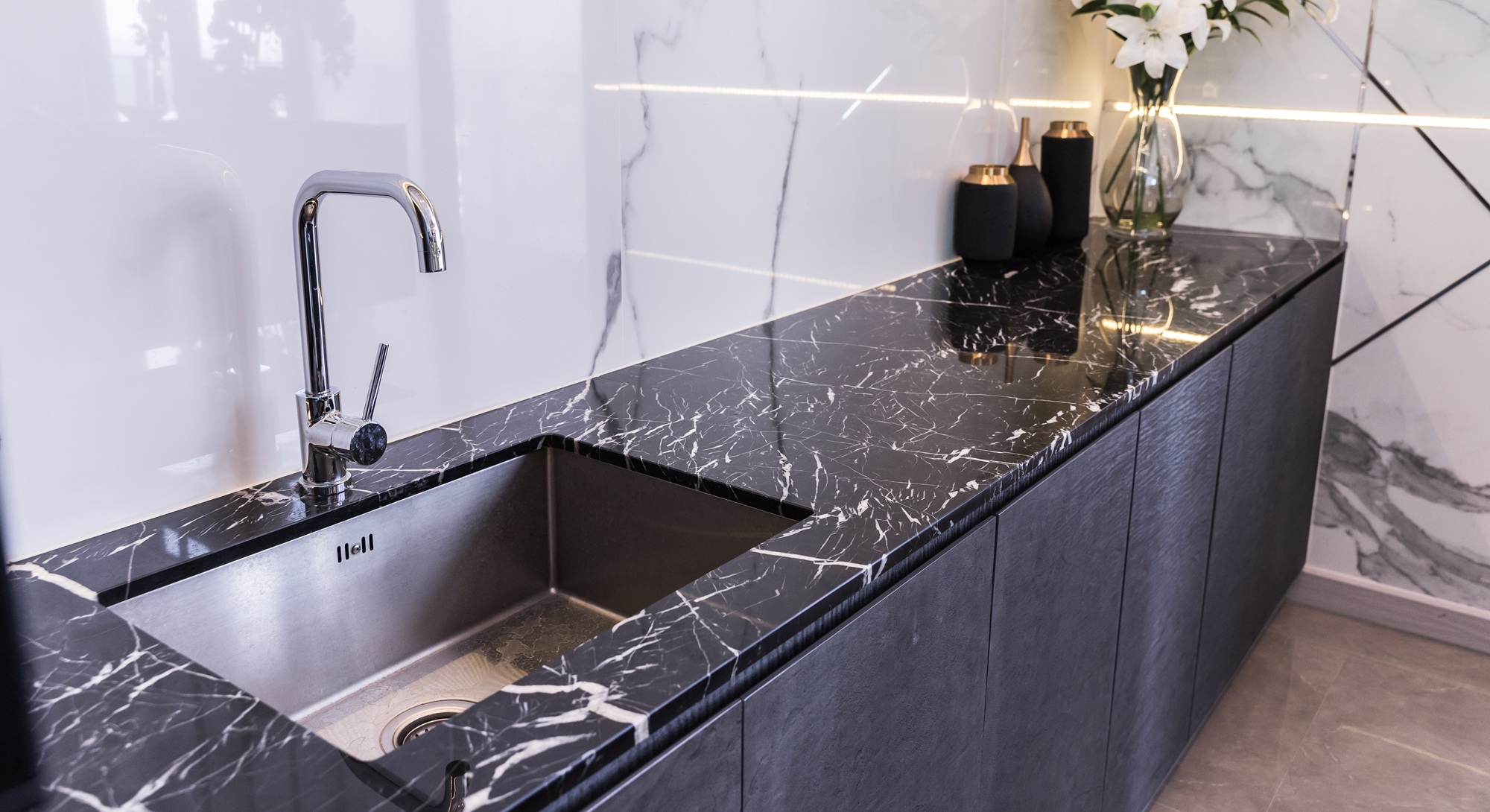 Black,Kitchen,Sink,And,Tap,Water,In,The,Kitchen.,The